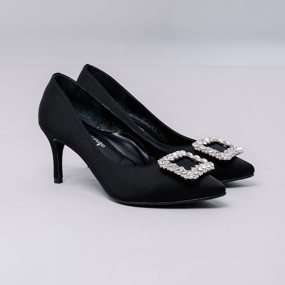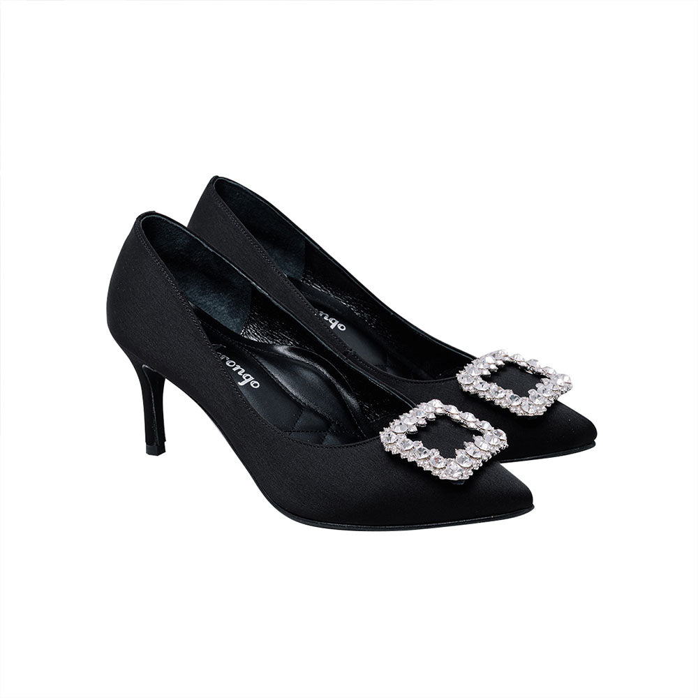 La Morongo Co. Classic Black Rhinestone Square Buckle High Heels